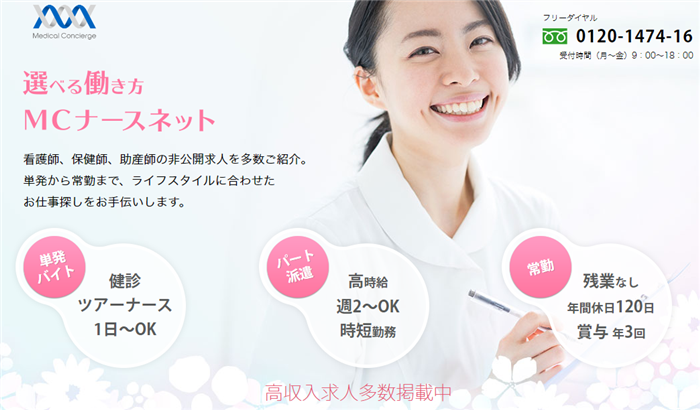 MCナースネットは、「医療従事者の自己実現を支える」というサービス理念をもち、 求職者のライフスタイルに合わせた仕事探しをサポートしてくれる転職エージェントサービスです。